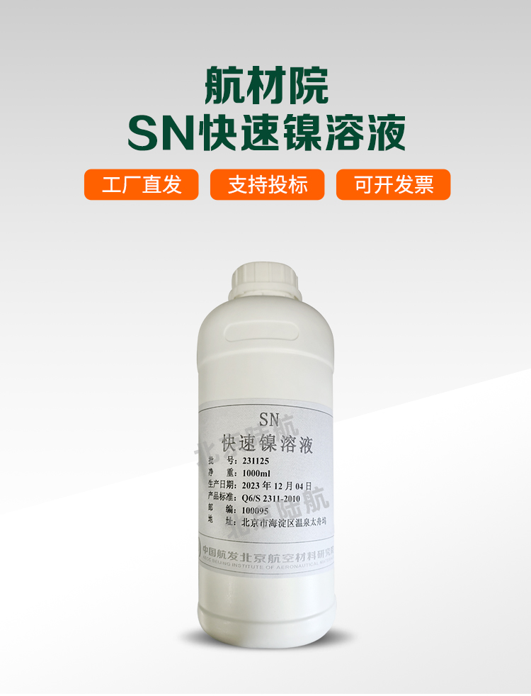 SN快速镍溶液是一种高效的电镀液,适用于飞机部件的表面处理和防护,确保部件的耐用性和性能。品质良好,溶解性强,可快速均匀地沉积镍层。