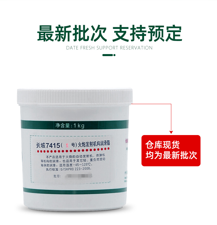 长城7415火炮润滑脂是以皂基稠化剂稠化合成油,并加入抗氧、抗腐蚀和固体润滑剂精制而成。按稠度级别分为0、1、2、000四个稠度等级。