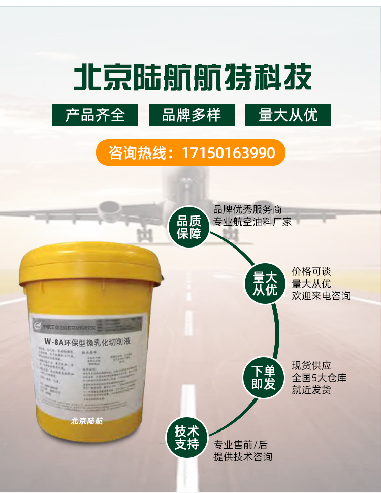 W-8A 环保型微乳化切削液是利用新的切削液技术,整合了航空领域中先进的高效防腐、高效清洗等技术,通过复配的表面活性剂体系研制而成的一种新型多功能切削液。