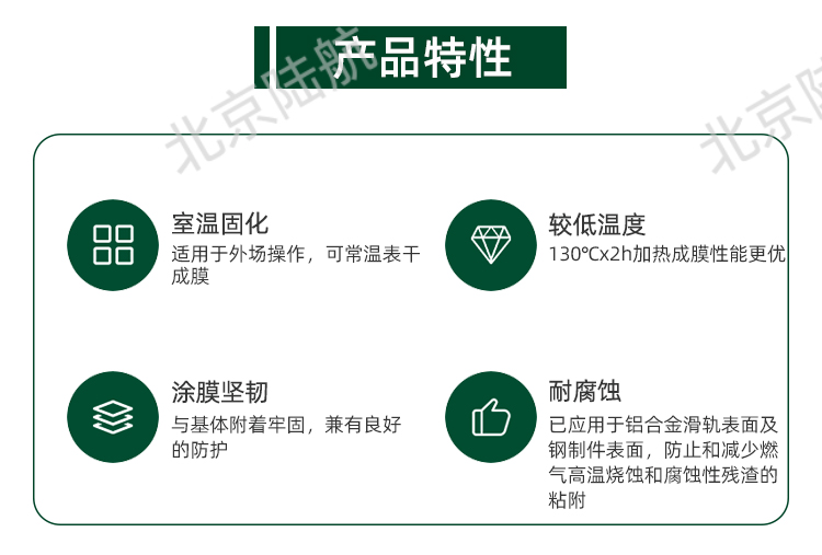 典型特点:室温固化;涂膜坚韧,与基体附着牢固,兼有良好的防护作用和润滑性,工作温度为-55℃~120℃。